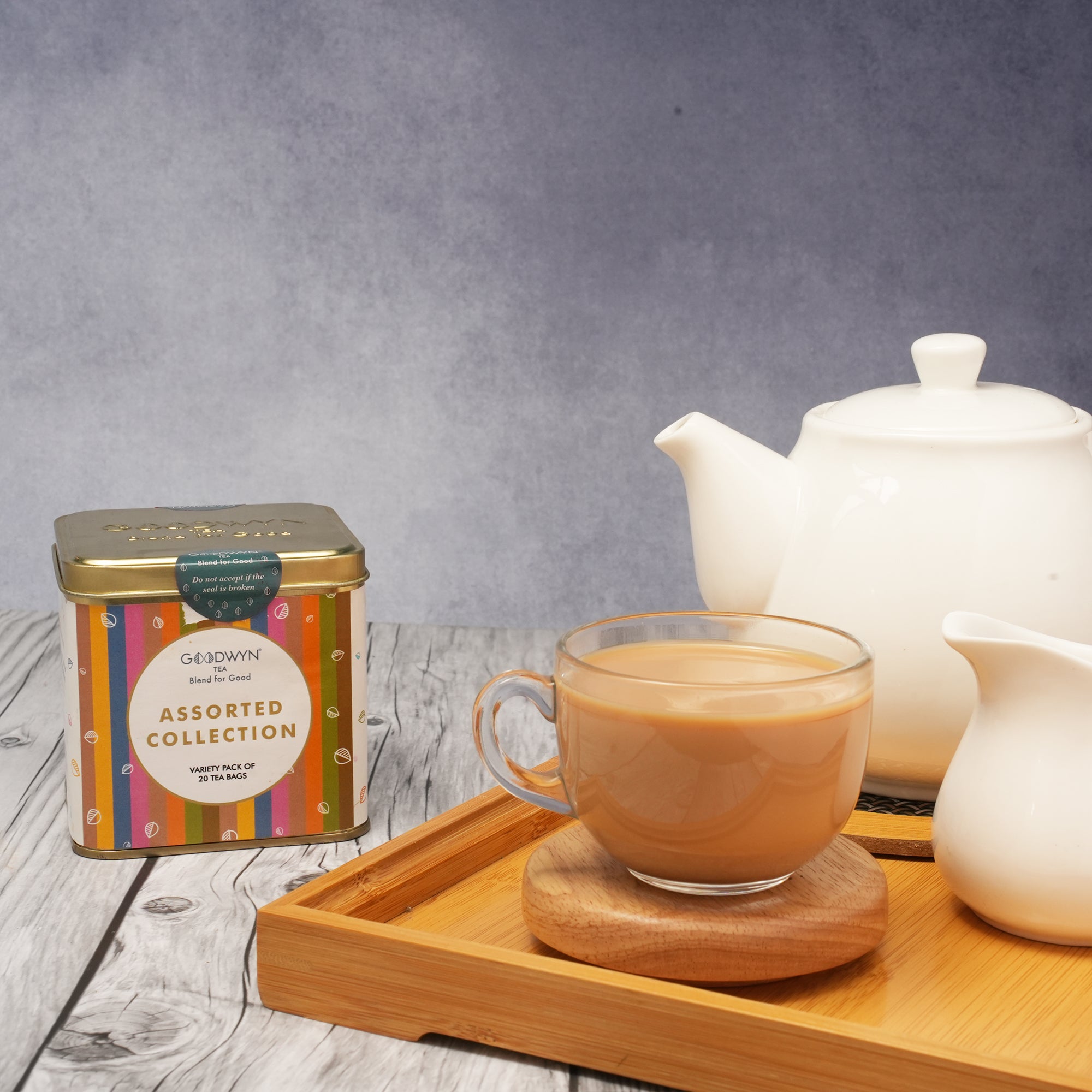 Pocket friend and easily customisable, Goodwyn's Assorted Tin contains a handpicked collection of Premium Indian Teas. Best suited for budget friendly thoughtful gifting.